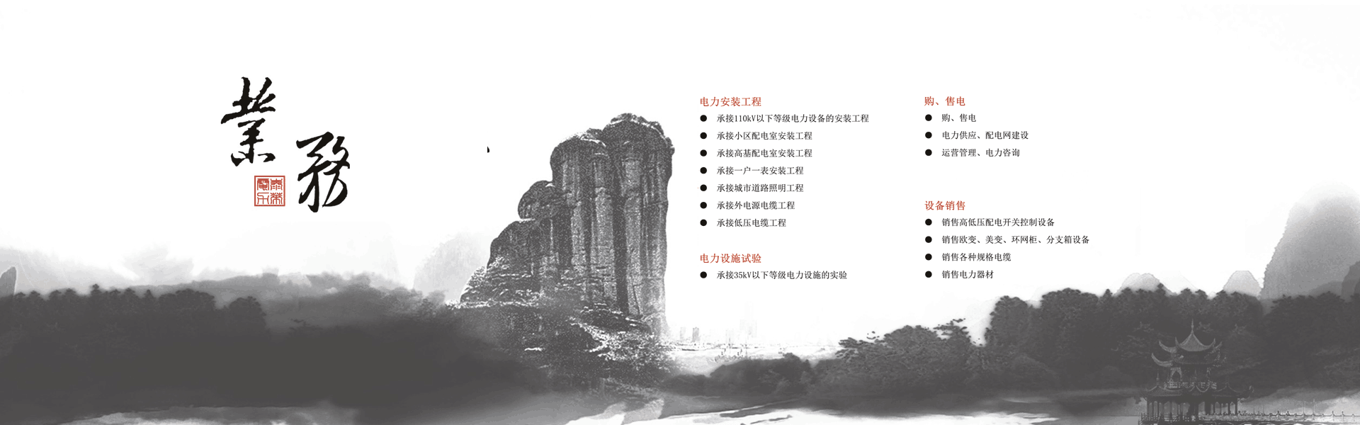 集高、低壓電力工程設計、安裝 、維護、試驗為一體的專業(yè)電力施工企業(yè)。 致力于為客戶提供完善 、專業(yè)的電力工程整體服務 ,以電力工程規(guī)劃咨詢 、設計、項目 管理、實驗和工程總承包為業(yè)務核心